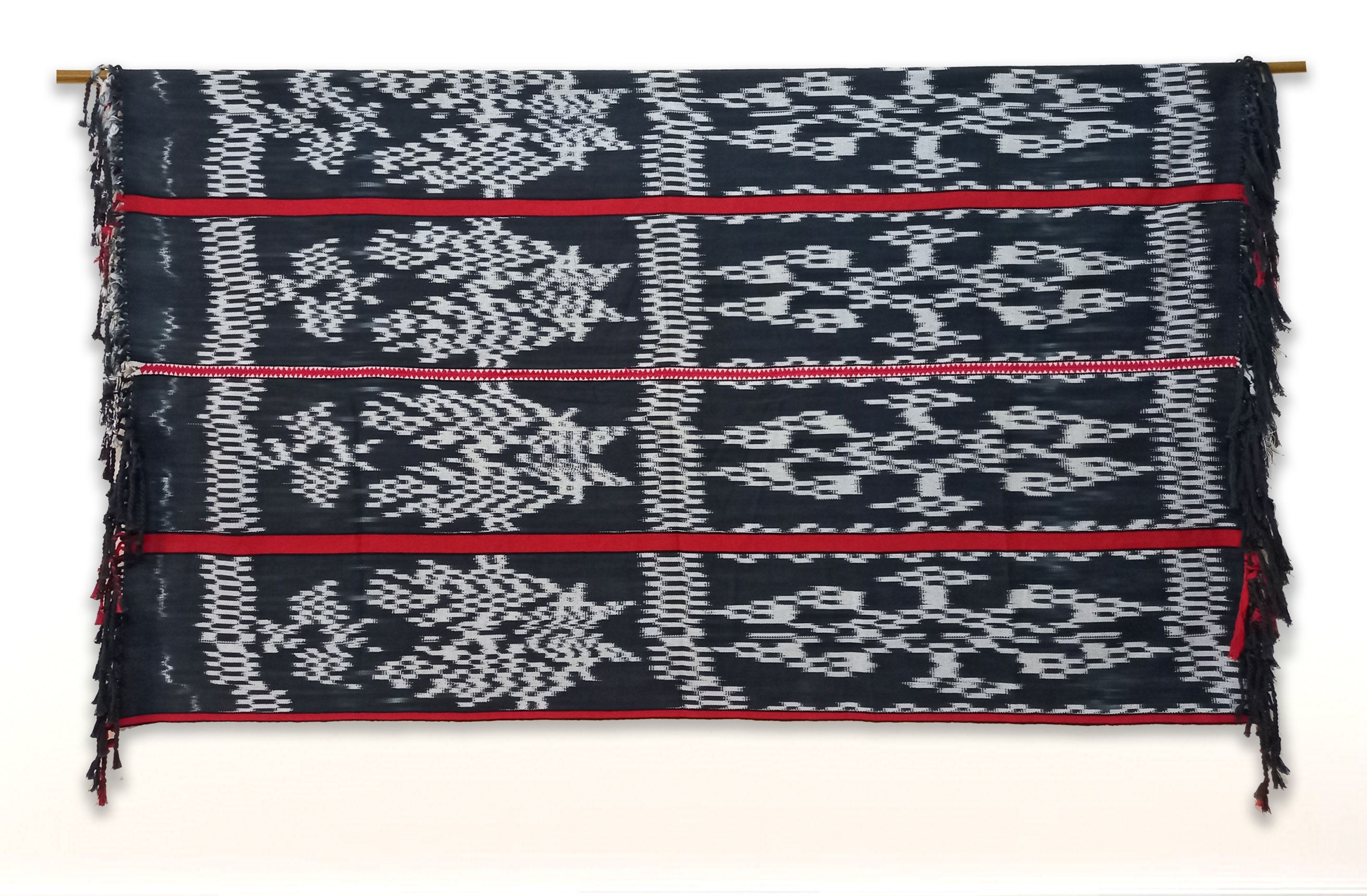 handdyed 100% Philippine cotton, handwoven on backstrap loom; two (2) panels of binobodan weave joined by traditional embroidery