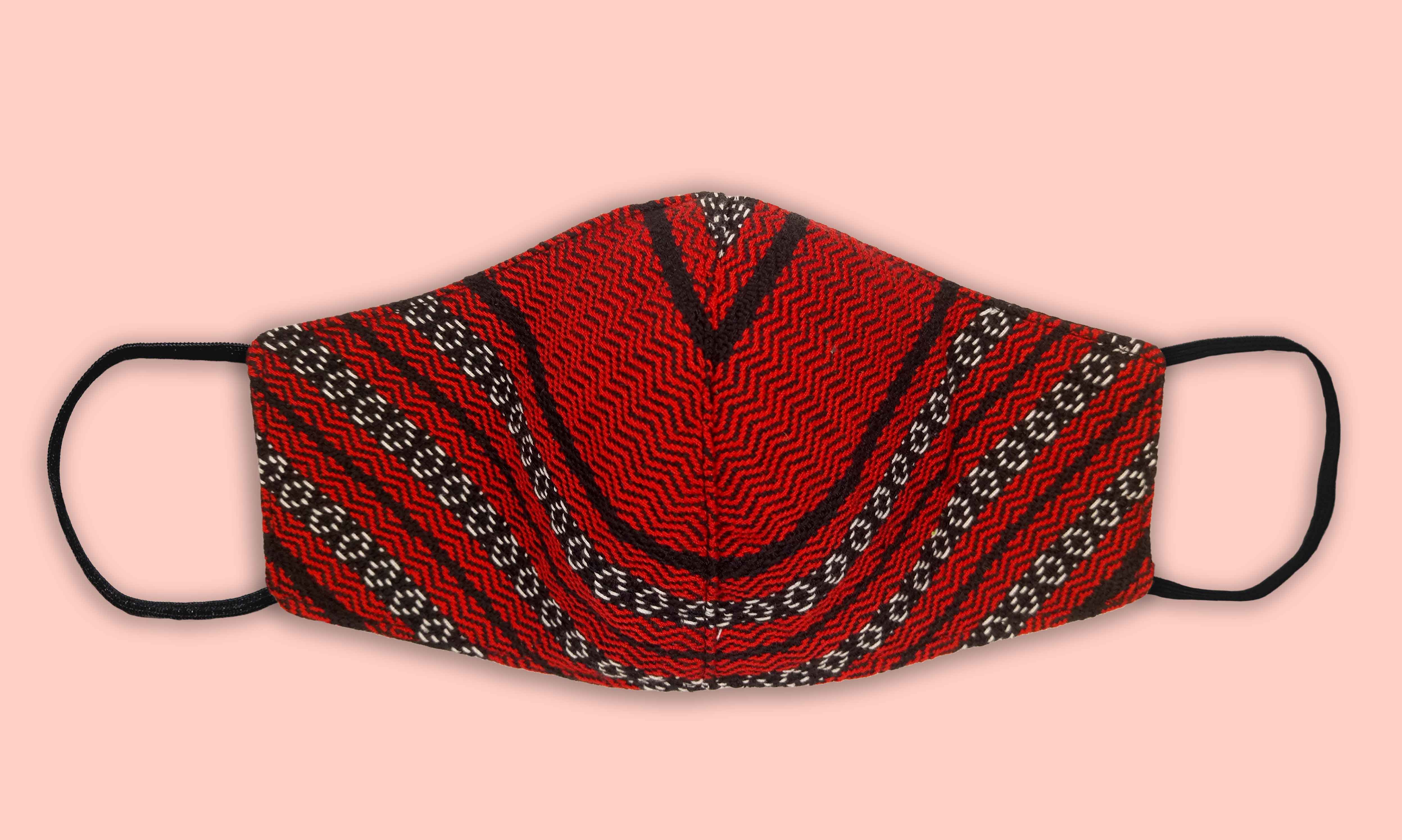 Made with an outer layer of Ifugao weave, a non-woven polypropylene layer for filtration, and polyester inner lining for comfort. Handwoven in Ifugao.